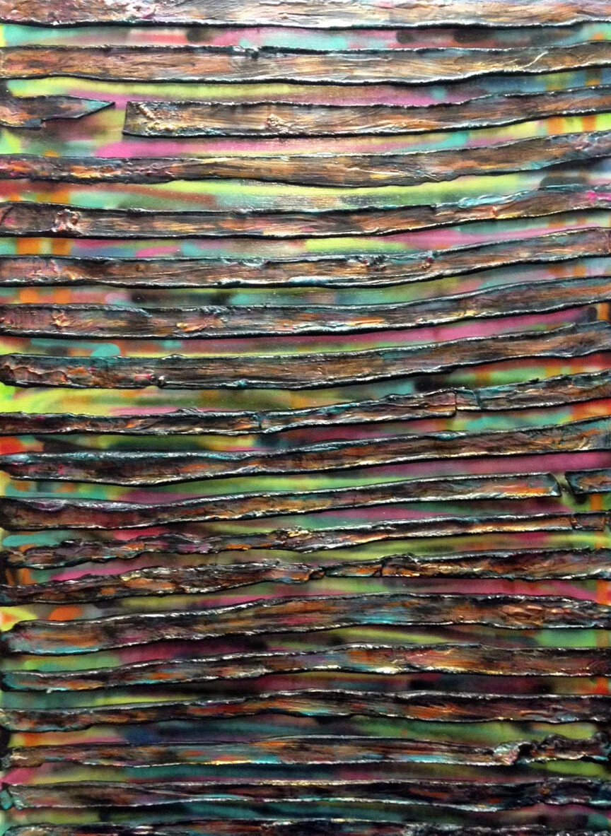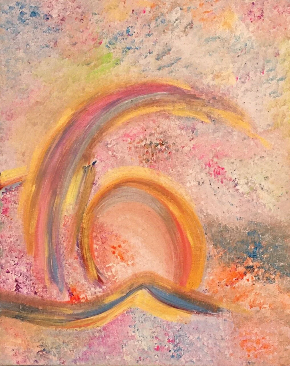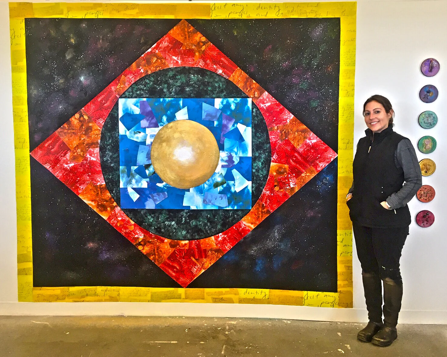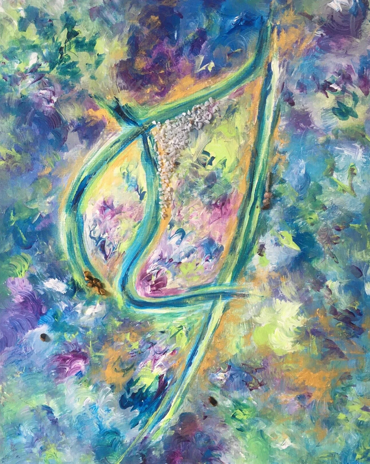 Walnut shells collected in the nearby forest, painted and filled with crystals, blended into my painting.