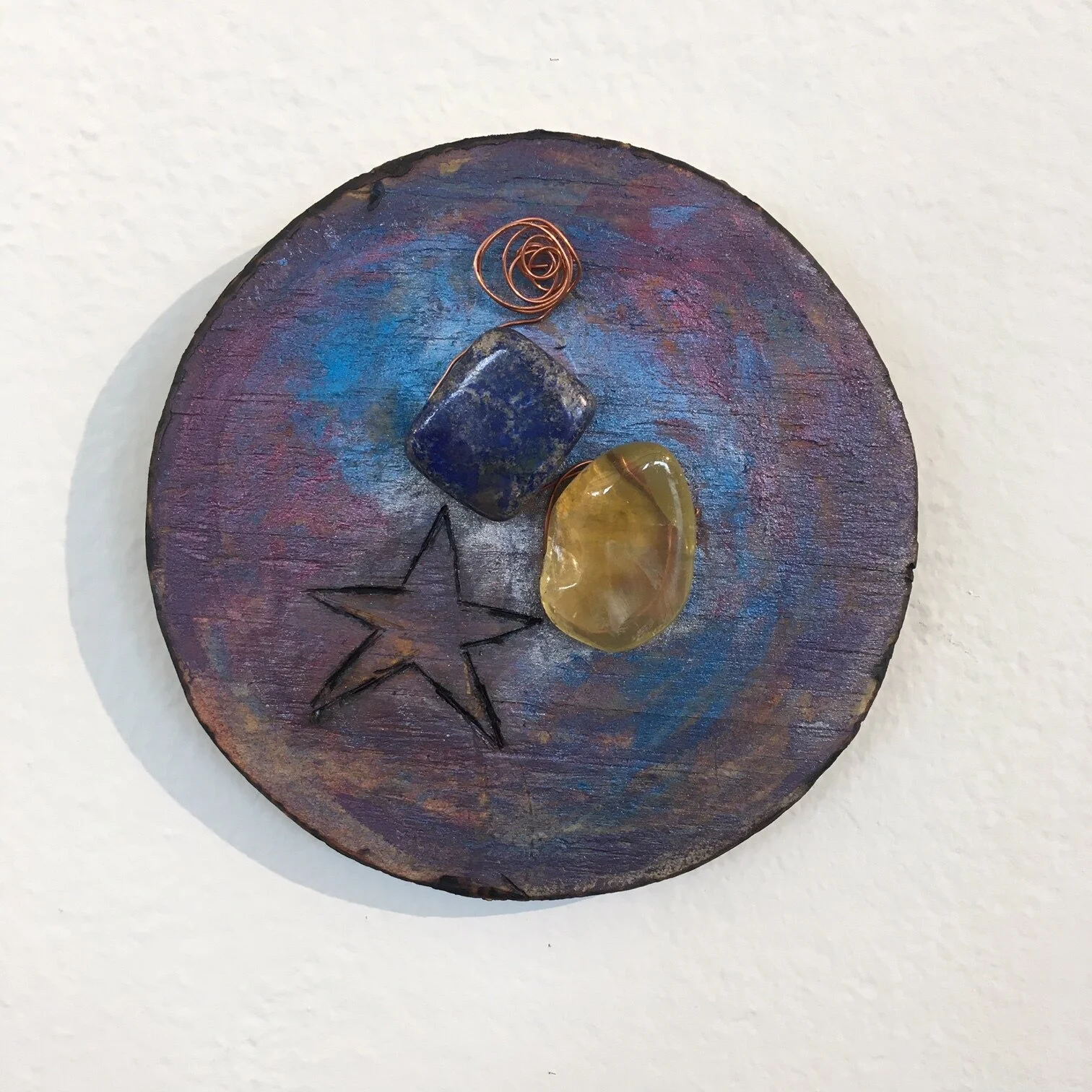 I love looking at land/earth art. It’s so inspiring to see artists creating outside, using the materials around them that nature provides. I have been experimenting with natural materials such as leaves, walnut and acorn shells, pinecones, crystals and sticks. I also study sacred art, sigils and symbolism. Below you will see a variety of mediums, methods and explorations.